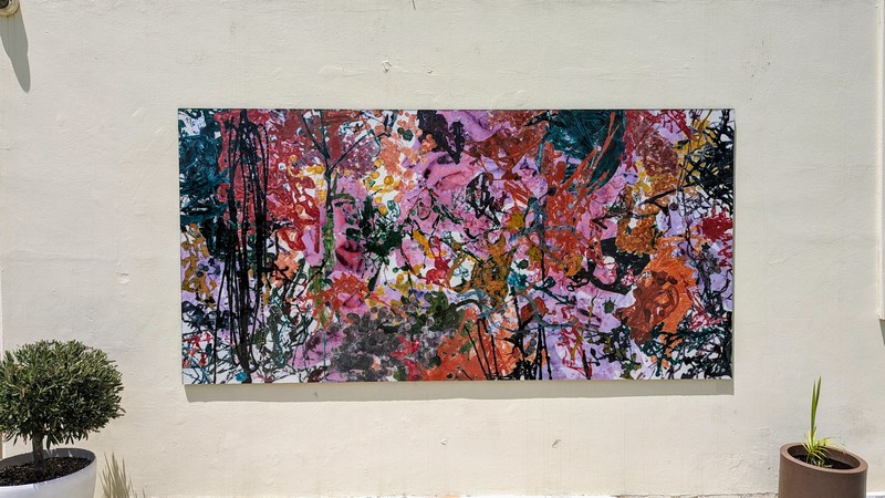 Στο συγκεκριμένο έργο χρησιμοποιήθηκαν ακρυλικές μπογιές και είναι το προϊόν συνεργασίας 12 τμημάτων (περίπου 250 παιδιών!). Το έργο έχει διαστάσεις 310x153cm και κοσμεί την είσοδο του σχολείου μας, αφού του έγινε επεξεργασία με εποξική ρητίνη.